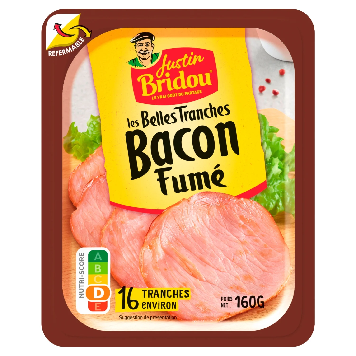 Bacon en tranches x16 tranhes JUSTIN BRIDOU la barquette de 160g