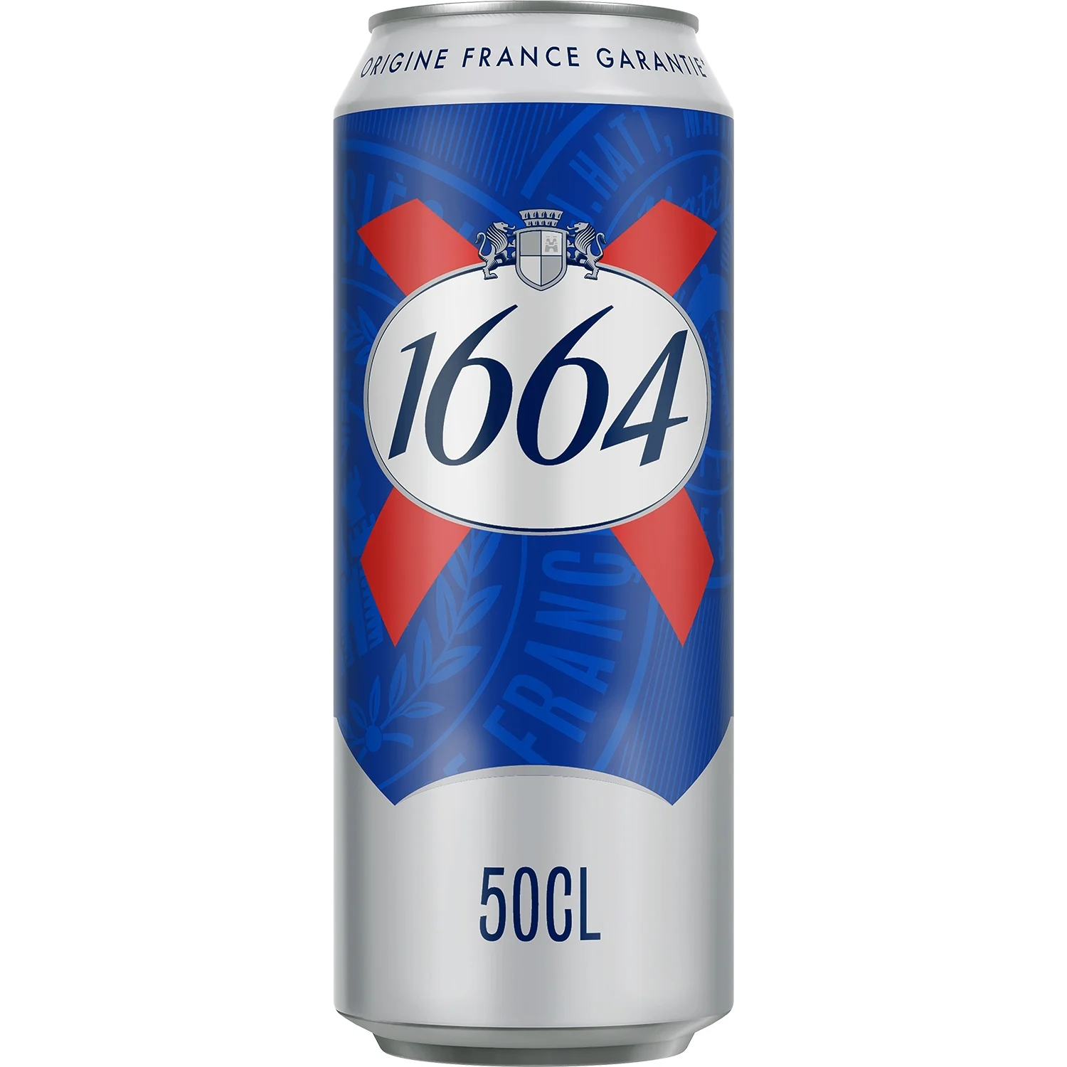 1664 Blonde, bière blonde emblématique brassée en Alsace, présente une robe jaune intense et une mousse dense. Elle offre des notes florales et un équilibre subtil entre finesse et amertume.