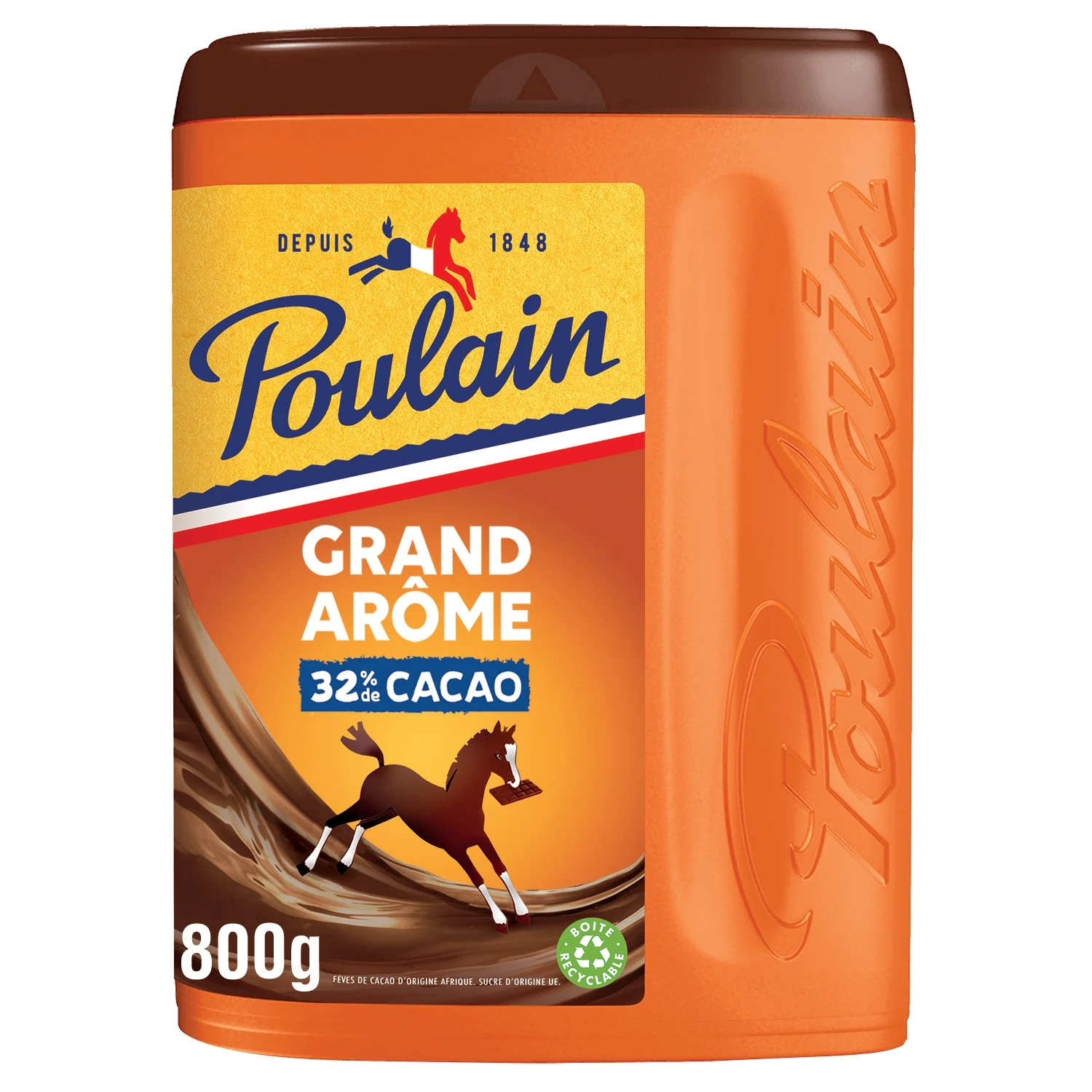 Chocolat en Poudre Grand Arôme POULAIN La boîte de 800G quantité