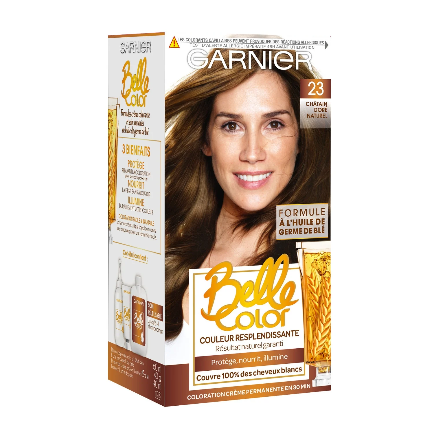 Coloration Permanente 23 Châtain Doré Naturel Belle Color GARNIER la boîte de coloration
