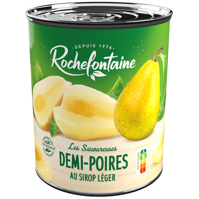 Demi poires au sirop léger ROCHEFONTAINE, boîte 820g