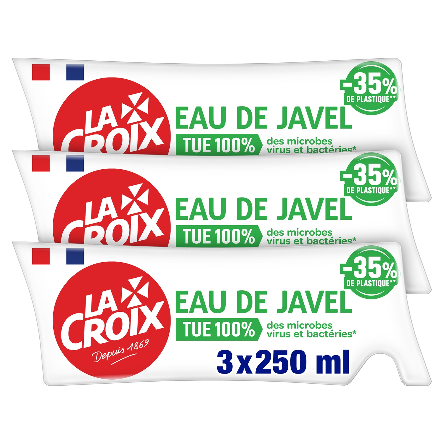 La nouvelle eco recharge La Croix Javel Original, tue 100% des microbes, virus et bactéries. Il détache, désinfecte, nettoie et désodorise. Son nouveau berlingo à diluer avant emploi, est composé de 35% de plastique en moins par rapport à l’ancienne dose La Croix.