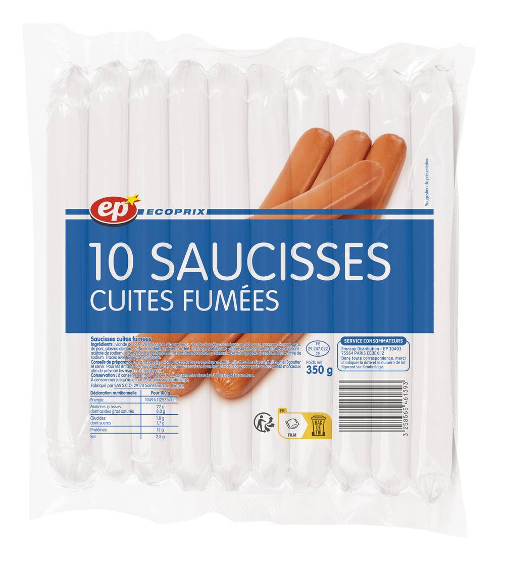 Ecoprix Saucisses cuites fumées 350g