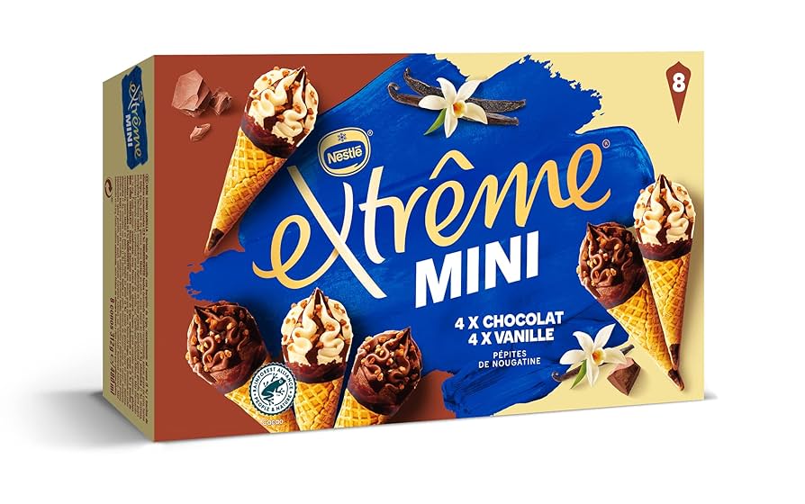 Extrême Mini cônes vanille nougatine & chocolat nougatine – La boîte de 8, 312g