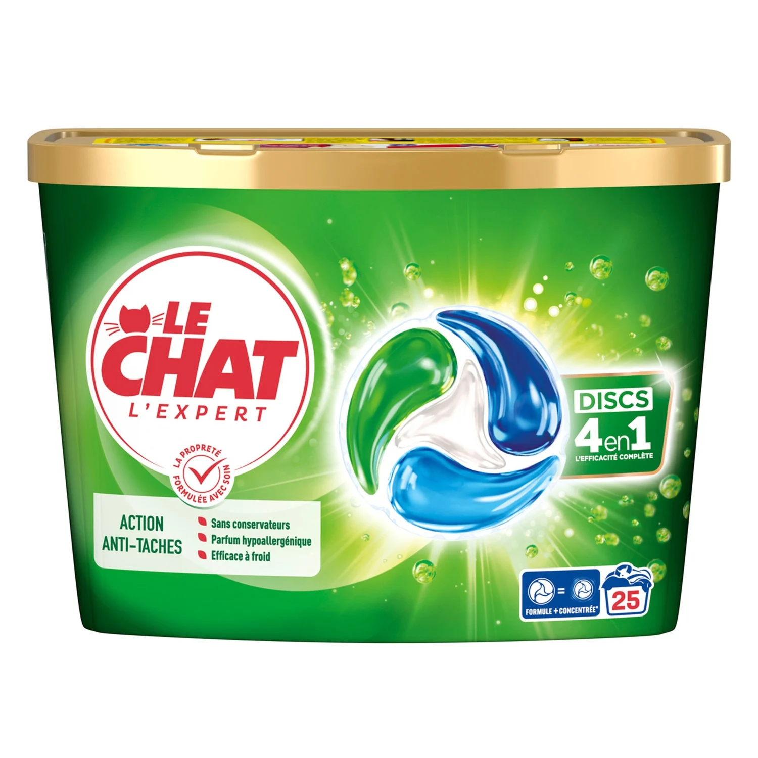 Lessive capsules 4en1 Discs Anti-taches LE CHAT la boite de 25 capsules